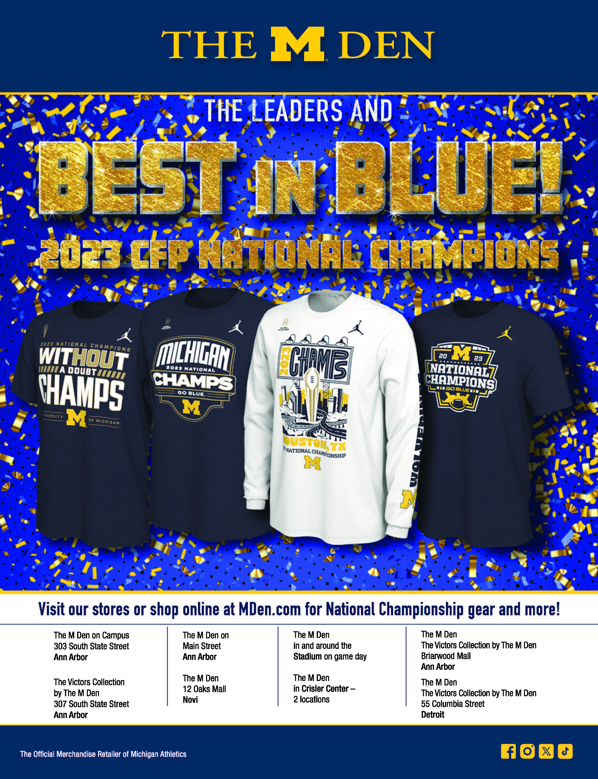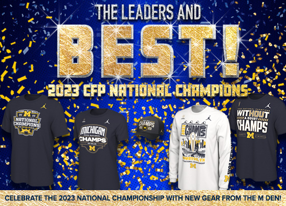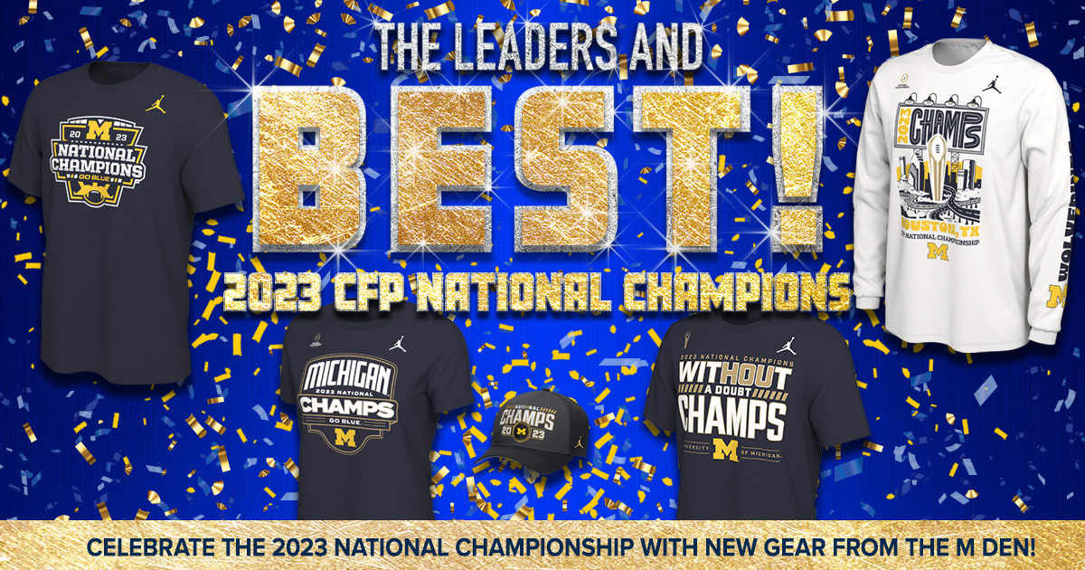 For the 2023 National Championship, I created a full suite of assets for The M-Den, including the main page web banner, social media graphics and videos, and supporting print materials. The design celebrated the championship with bold, energetic visuals, capturing the excitement of the win with a bombastic style.